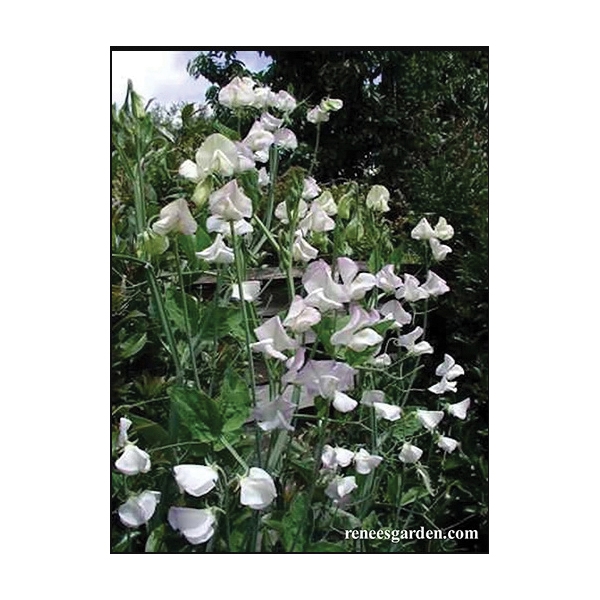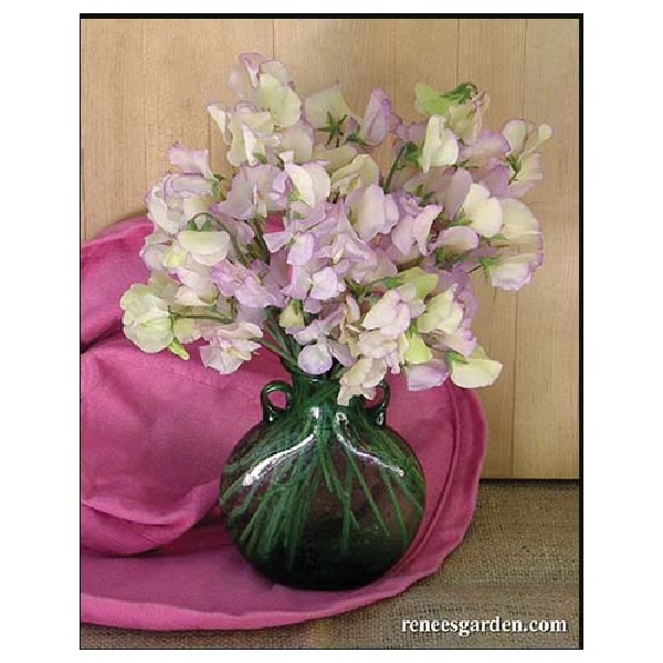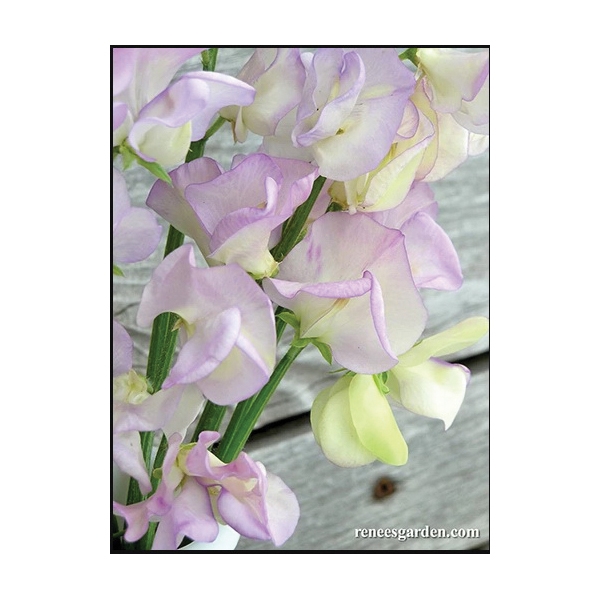 Developed by world-renowned breeder Dr. Keith Hammett, April in Paris is a perfect match of intoxicating fragrance, lovely form and captivating color with the most intense perfume of any sweet pea I have ever grown. The large ruffled blossoms are a soft primrose cream, tinted at the edges in dark lilac that deepens and increases with age. These strong growing vines produce heavy sets of long-stemmed flowers that beg to be cut for heavenly scented bouquets.
