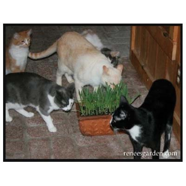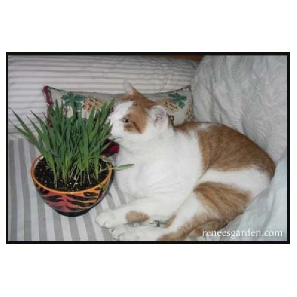 House cats (and pet rabbits and birds) naturally crave and enjoy eating greens. Planting our extra fancy blend of four organically grown grasses just for them will satisfy this need and deflect them from eating your houseplants. Our nutritious blend is tender, sweet and easy to digest, containing easily assimilated vitamins and enzymes that keep your pet healthy and beautiful. Fresh greens are a natural breath freshener and provide beneficial roughage that will aid your pet's digestion and prevent hair balls.