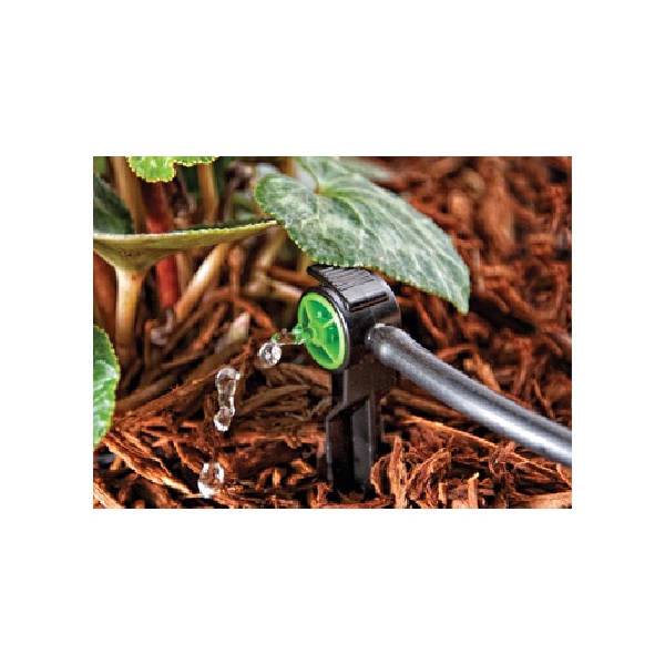 DIG PC drip emitter on stake is a turbulent-flow-path pressure compensating drip emitter, designed to produce a consistent flow rate of 2 gph in a pressure range of 10 to 40 psi. The drip emitter on stake contains a diaphragm that continuously adjusts to varying water pressures regardless of elevation or any pressure fluctuation along the laterals, ensuring even and consistent flow rates from each drip emitter. They can be used for any type of planting, including pots and baskets and with long runs of drip tubing. Use 1/4 in micro tubing to extend the emitter stakes from the drip tubing directly to the plant.