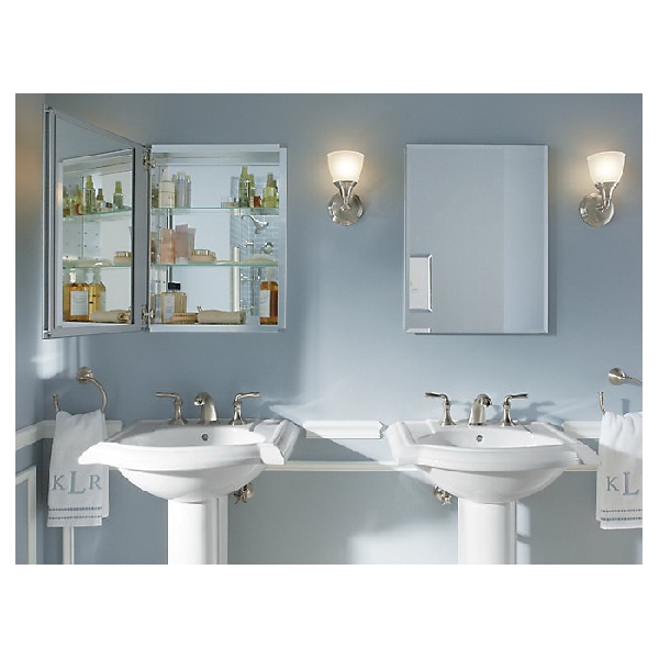 With mirrored surfaces inside and outside, this 20 in frameless medicine cabinet helps you put your best face forward. The mirror on the front door features a beveled edge for enhanced style. Inside, adjustable glass shelves easily accommodate your toiletries.