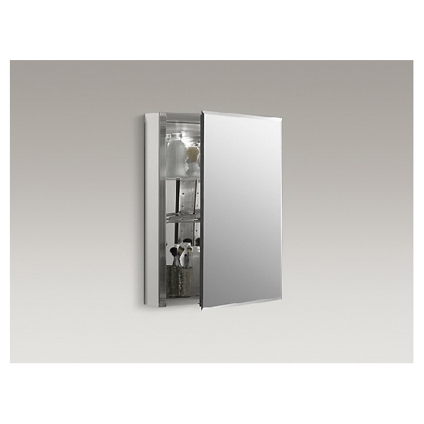• Kohler K-CB-CLC2026FS Frameless Medicine Cabinet, 20 in OAW, 4-13/16 in OAD, 26 in OAH, Aluminum/Glass, 2-Shelf