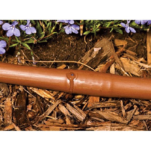 DIG Earthline Brown PC dripline tubing consists of 100 ft roll of dripline with 1 gph pressure compensating (PC) drip emitters built into the interior wall of the dripline every 12 in or 18 in. Each PC drip emitter consists of a cylinder with a labyrinth-like water passage, a filter and a silicon diaphragm. Each PC drip emitter continuously adjusts to varying incoming water pressures ranging from 10 to 45 psi, ensuring a constant flow rate regardless of any elevation along the dripline. In addition, the drip emitter’s self-flushing mode allows particles to pass harmlessly through, providing reliable performance and a longer life.