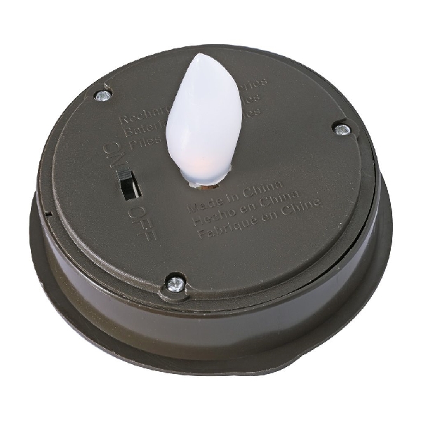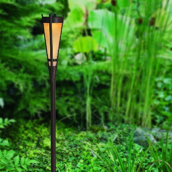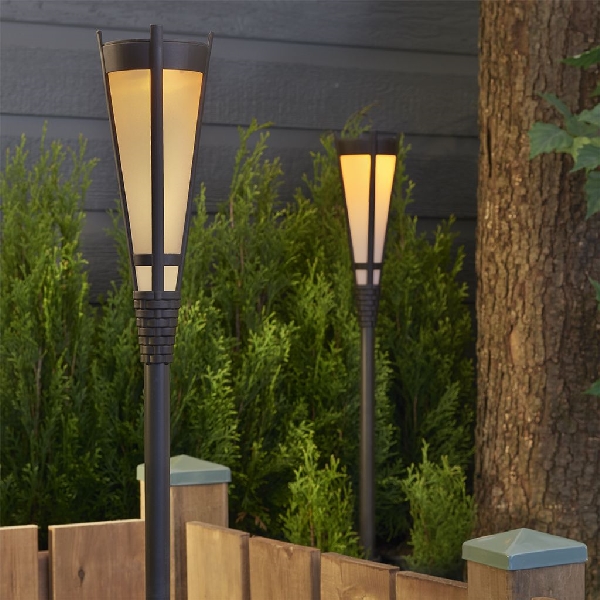 Our solar-powered torch light offers a safe way to light your backyard and other outdoor spaces. Features a frosted plastic diffuser and a flickering amber LED for a realistic flame-like glow. Runs on one AA 600 mAh NiMH battery.