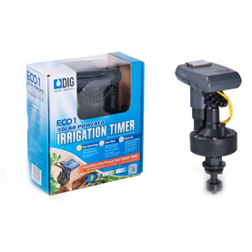 DIG's ECO1™ MVA is an advanced single-station solar-powered irrigation controller mounted on a 3/4 in actuator and is used to automate a 3/4 or 1 in manual anti-siphon valve. Power is derived via a patented, time-tested internal photovoltaic module and microelectronic energy management system that is fueled by ambient light (solar). This provides power to the controller through the day anytime, anywhere and in any weather. The controller uses features that include five start times per day, watering duration of up to 5 hr and 59 min, manual run, monthly budget, rain off with restart in up to 99 days, system off and irrigation off for any month of the year. It also has additional features that include daily watering restrictions that can be used on any watering event that requires curbing by cites and municipalities.