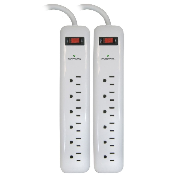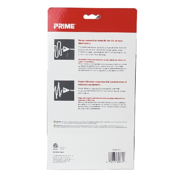Prime Surge Protector, 15 A, 125 V, 1875 W Wattage, 400 J Energy, 6 Outlets, LED Indicator, ABS, Gray/White