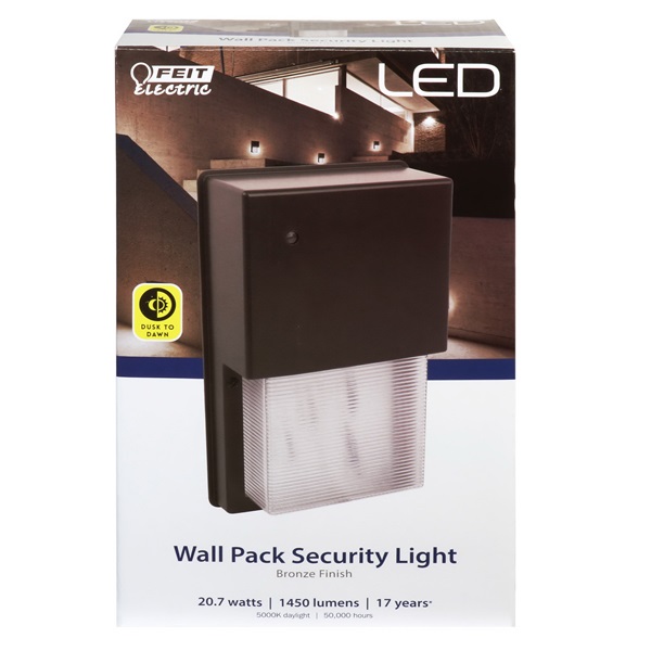 Feit Electric S10WPK/850/DD/BZ Wall Pack, 120 V, 20.7 W, LED Lamp, 110 deg Beam, 1450 Lumens Lumens, 5000 K Color Temp