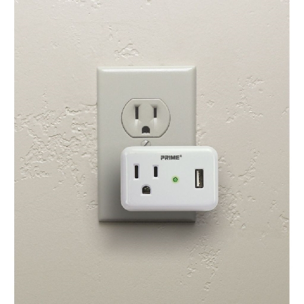 Prime Surge Protector with USB Charger, 15 A, 125 V, 1875 W Wattage, 150 J Energy, 1 Outlets, Plastic, White
