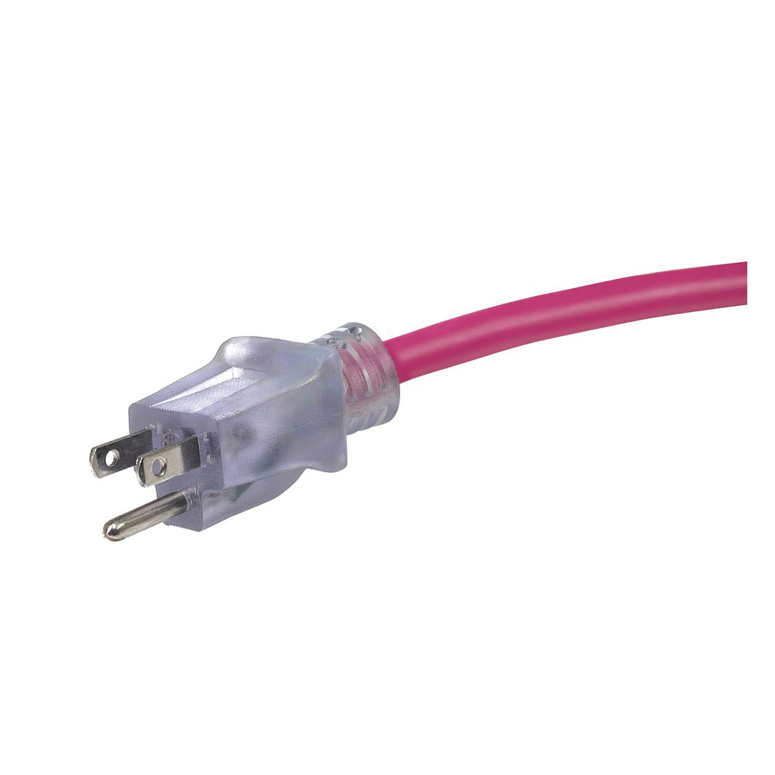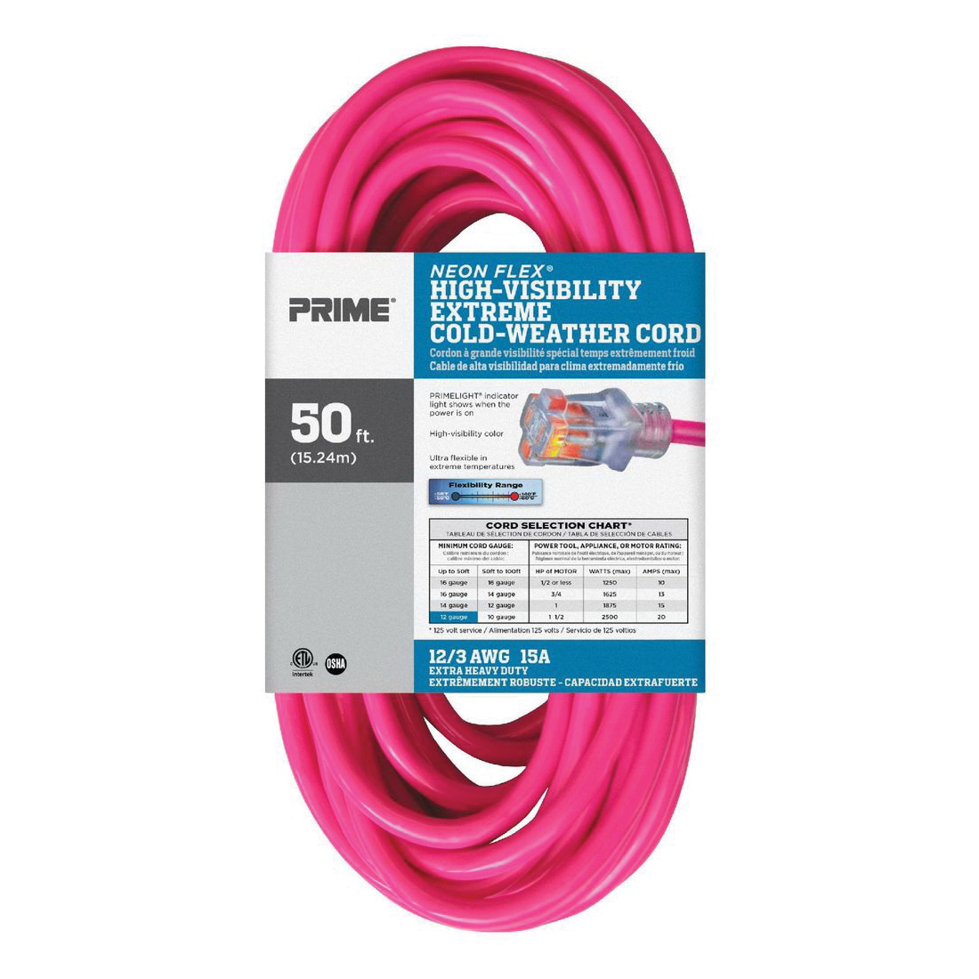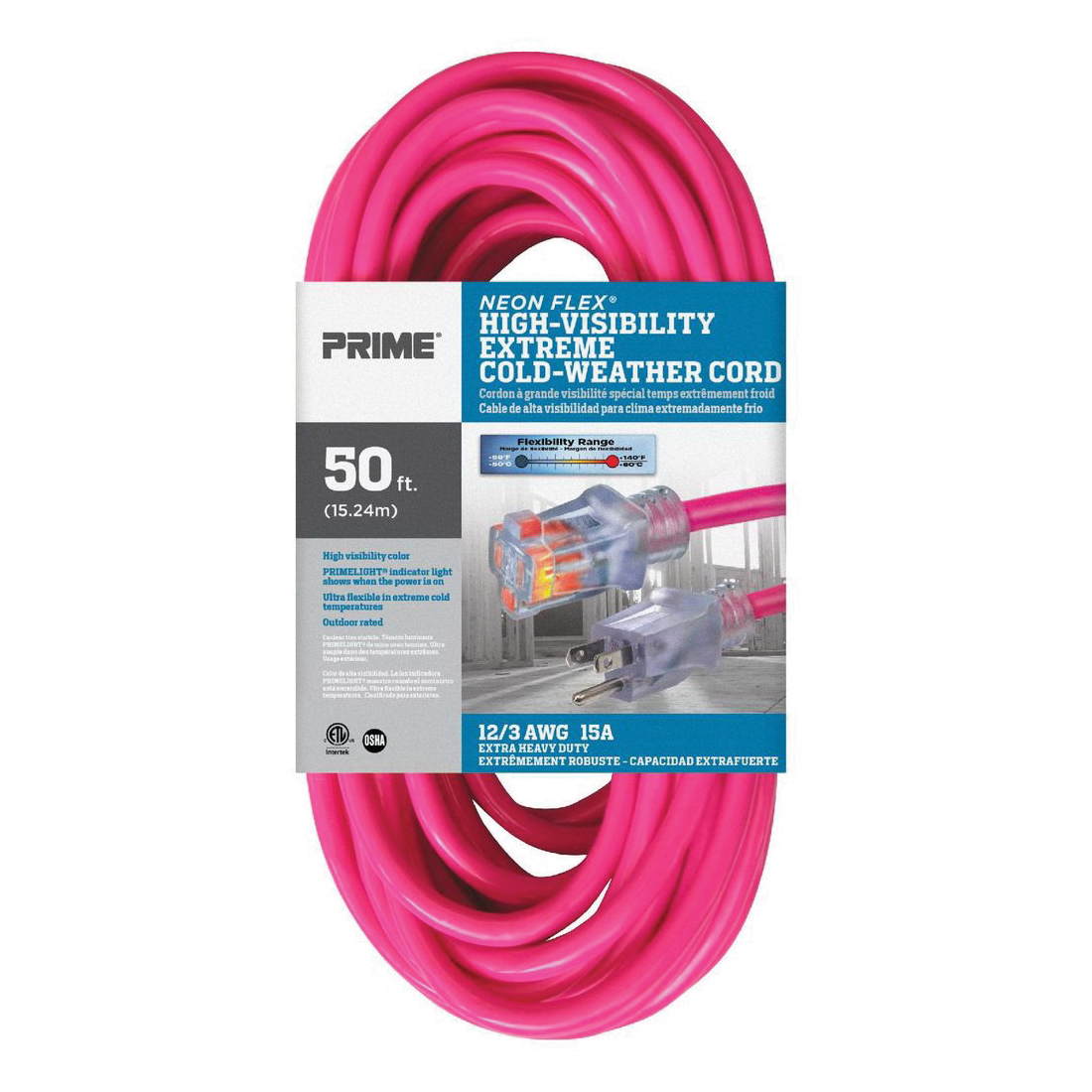 Prime Neon Flex NS513830 Outdoor Extension Cord, 12 AWG Wire, 50 ft L, High Visibility Pink Sheath, 125 V
