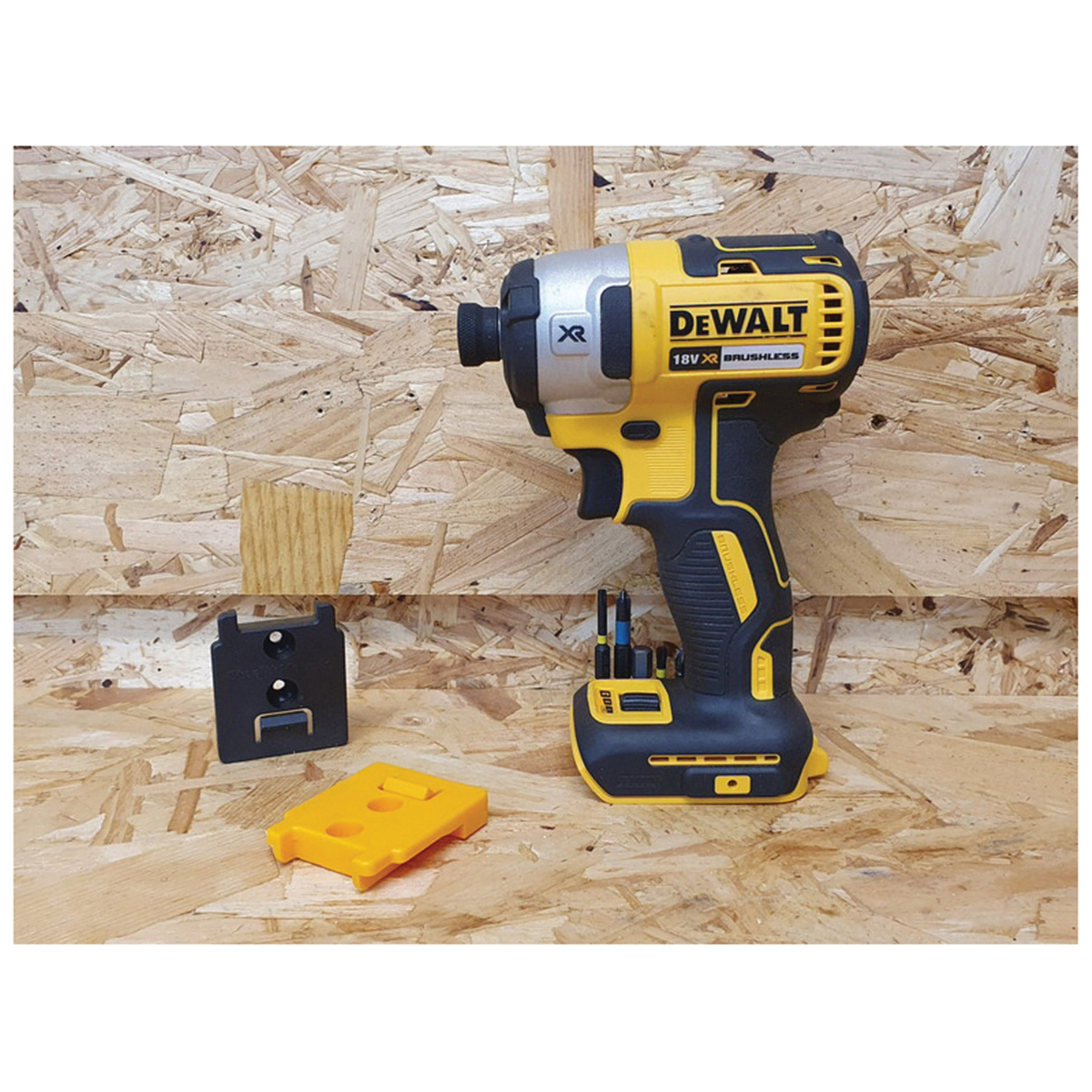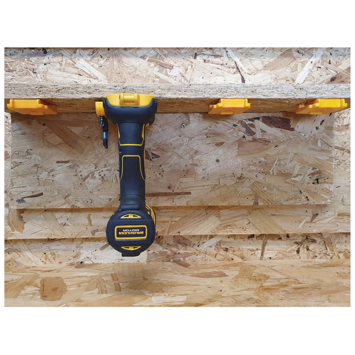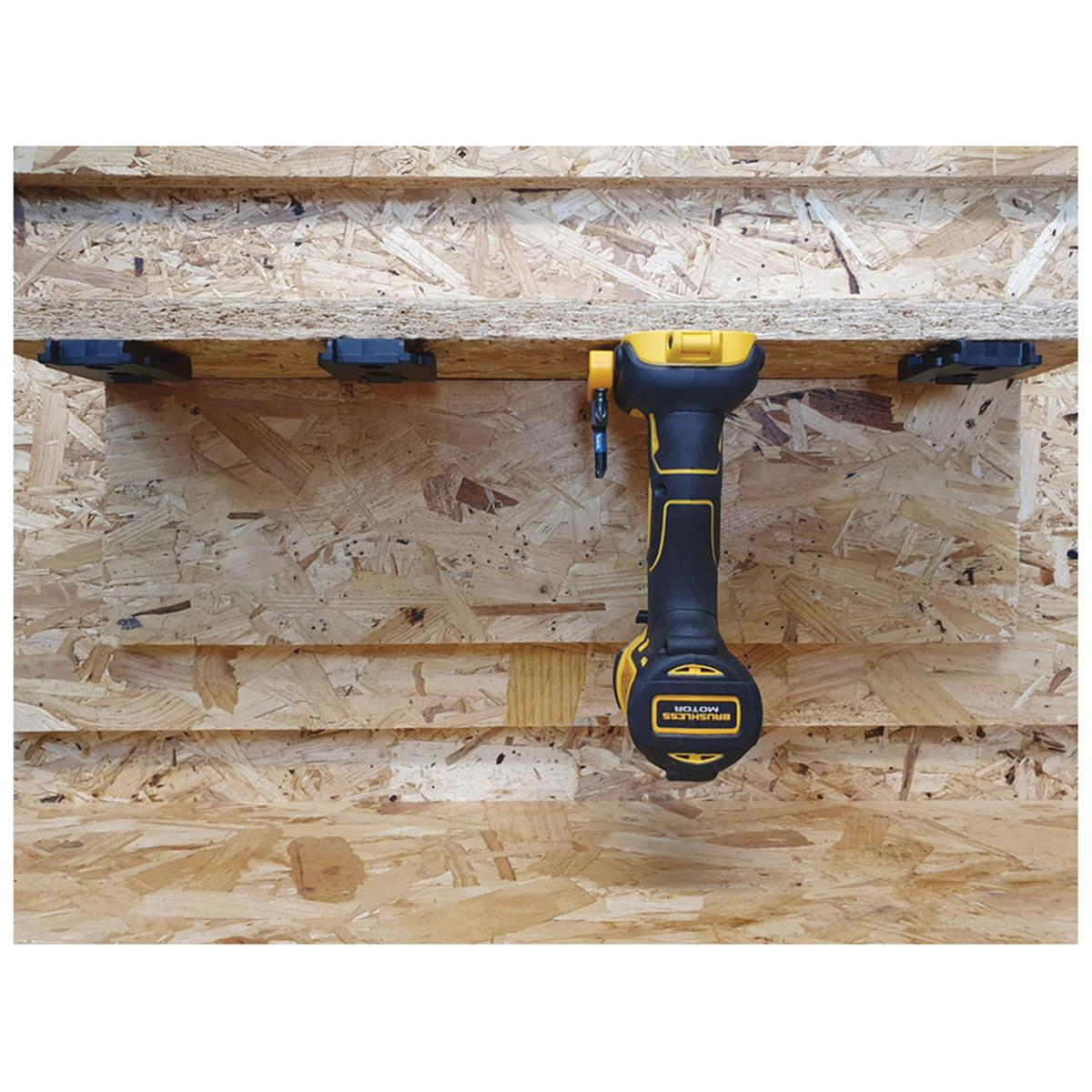 StealthMounts tool mounts for DeWalt 18 V XR, 20 V Max XR, 54 V Flexvolt and Flexvolt 20 V/60 V Max cordless tools. Keep your tools organized and right where you need them. Made from strong injection molded ABS plastic with holes for mounting. Can be mounted at varying distance from one another and in very small spaces for maximum workshop efficiency.