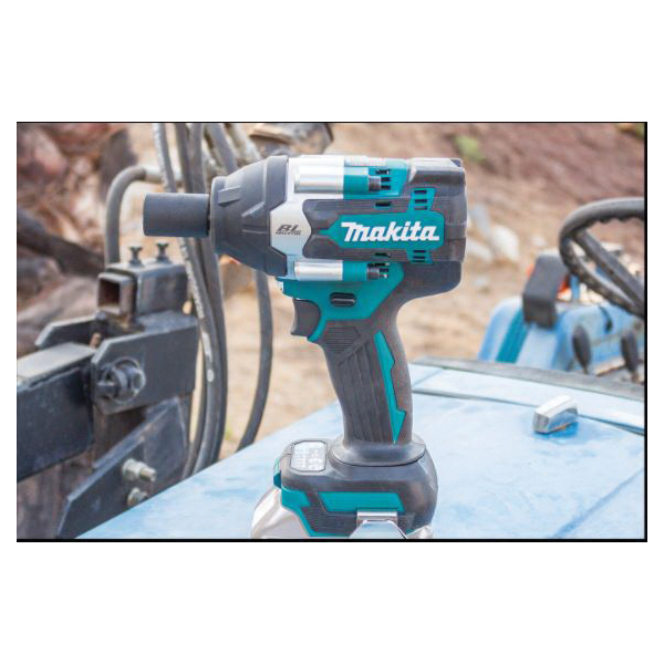 The 18 V LXT® Lithium-Ion brushless cordless four-speed mid-torque 1/2 in sq drive impact wrench with detent anvil, tool only (XWT18Z) provides improved fastening control, ideal for automotive, installation and fabrication trades. The impact wrench combines extended run time and speed control for unmatched fastening performance. It is powered by a Makita built brushless motor for longer run time. The brushless motor delivers 520 ft-lb of fastening torque and 740 ft-lb of nut-busting torque. Precise fastening control is achieved through the four speed power selection switch, which accounts for a wide range of applications. Additional precision features include three forward and three reverse rotation auto-stop modes and a full-speed mode function that reduces the trigger pull to reach full speed. Makita's proprietary hammer and anvil impact mechanism are manufactured using the best raw materials with the highest quality steel and unique heat hardening process for maximum fastening and driving power. The XWT18Z features Makita's extreme protection technology (XPT™), a protective seal inside the tool. It is designed to improve a tool's operation in harsh conditions by channeling water and dust from key internal components. It is part of Makita's 18 V LXT system.