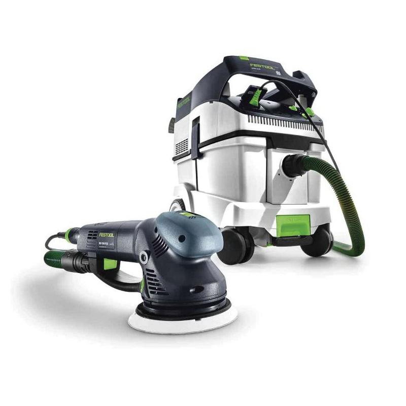- The power cable and suction hose are stored tidily and optimally protected in the permanently integrated Festool hose holder and cable holder