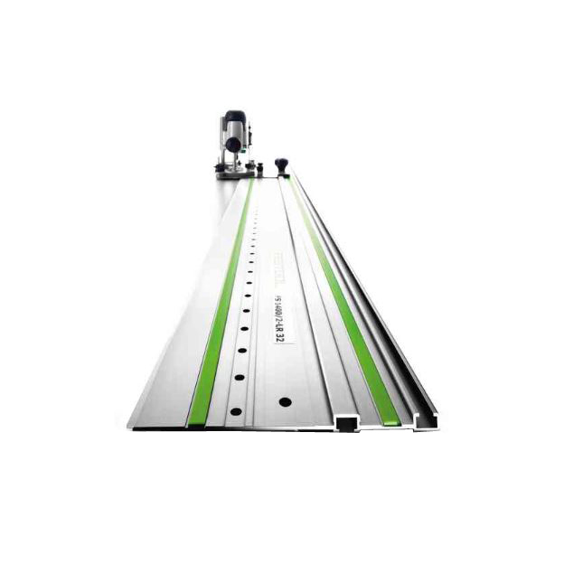 Invented and perfected by Festool, the guide rail. For making cuts and grooves with impressive precision. With slideway lining for guaranteed machine smoothness, a groove for screw and lever clamps and splinter guard for splinter-free sawing. Making breakthroughs in precision and convenience since 1964. The guide rail with hole spacing is indispensable when it comes to furniture assembly available in 1400 mm. No other solution creates series of holes with a router so quickly and easily. Whether it's for rack systems or fittings, it couldn't be easier.