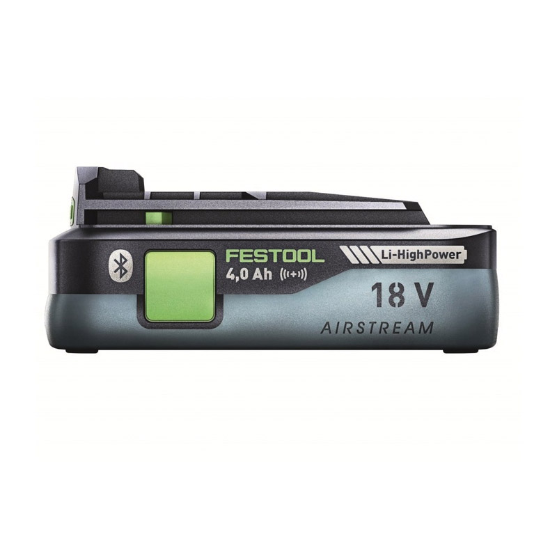 - Bluetooth® Lithium-Ion (Lithium-Ion) battery pack with AIRSTREAM function for all Festool 18 V cordless tools (except CXS, TXS, ETSC 125, RTSC 400, DTSC 400)