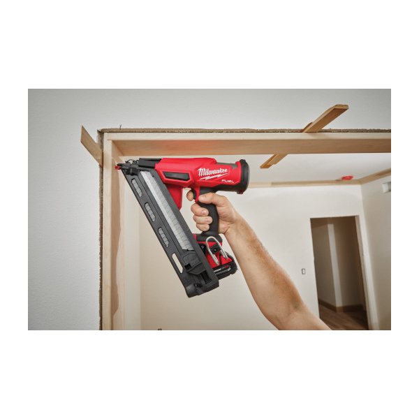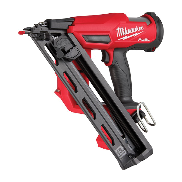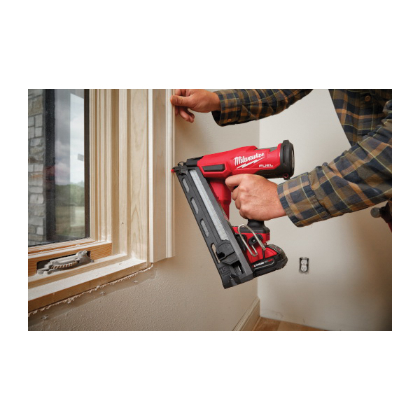 Our M18 FUEL™ 15 ga finish nailer provides peak productivity at your jobsite, delivering unmatched nailing performance without the hassle of a compressor and hose. Leveraging our nitrogen air spring mechanism, the 15 ga finish nailer allows you to consistently sink nails to your required depth in hard and soft woods while leaving clean nail holes, making for repeatable results and easy filling. The nitrogen air spring mechanism, combined with our POWERSTATE™ brushless motor and REDLINK PLUS™ intelligence, delivers a pneumatic-like nailing response with zero ramp-up time from nail to nail, keeping you productive and efficient throughout your job. This cordless finish nailer features a compact and ergonomic design providing access into tight spaces where nailing is required while limiting fatigue when using the tool. When paired with an M18™ REDLITHIUM™™ CP2.0 battery pack, this battery powered nailer fires up to 750 nails per charge and is fully compatible with all M18™ REDLITHIUM™ batteries. The Milwaukee® M18 FUEL™ 15 ga finish nailer delivers the pneumatic performance that professional carpenters and remodelers demand, with the freedom and convenience of cordless.