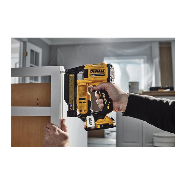 Complete finish, trim and remodeling work with this ATOMIC COMPACT SERIES™ 20 V MAX brushless cordless 23 ga pin nailer. The battery powered nailer is designed to drive 23 ga pin nails measuring between 5/8 in and 1-1/2 in with its high-output brushless motor. Take advantage of cordless convenience as you seamlessly drive nails with no hoses, compressors or gas cartridges required. Battery and charger not included.