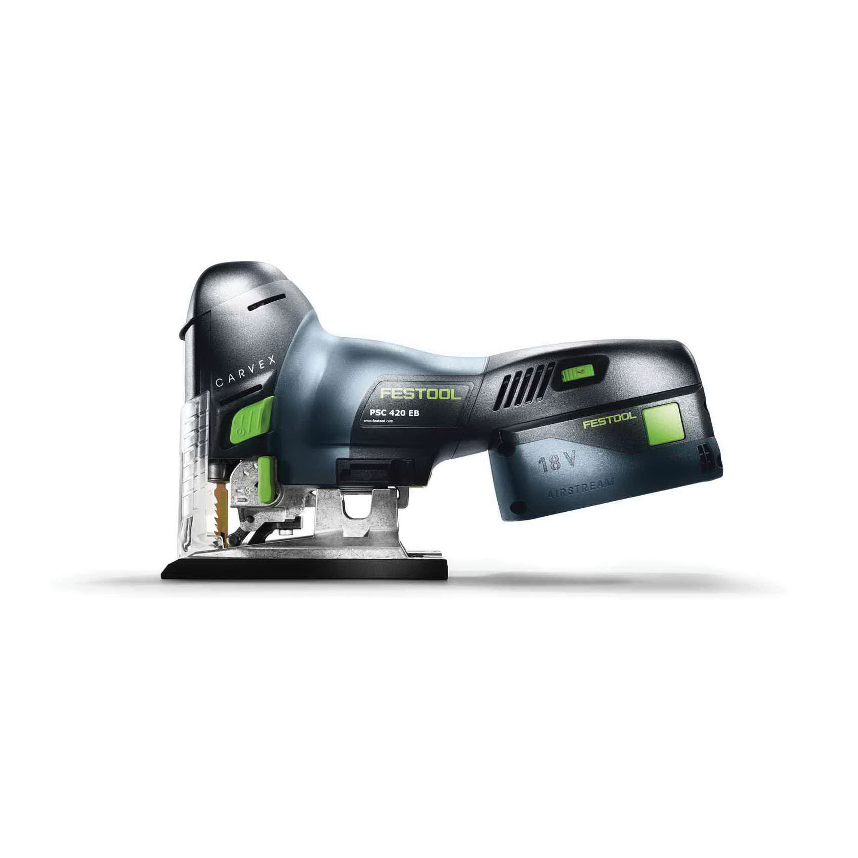 Festool 576527 Cordless Jigsaw Kit, Battery Included, 18 V, 4 Ah, 4-3/4, 3/8, 3/4 in Cutting Capacity, 1 in L Stroke