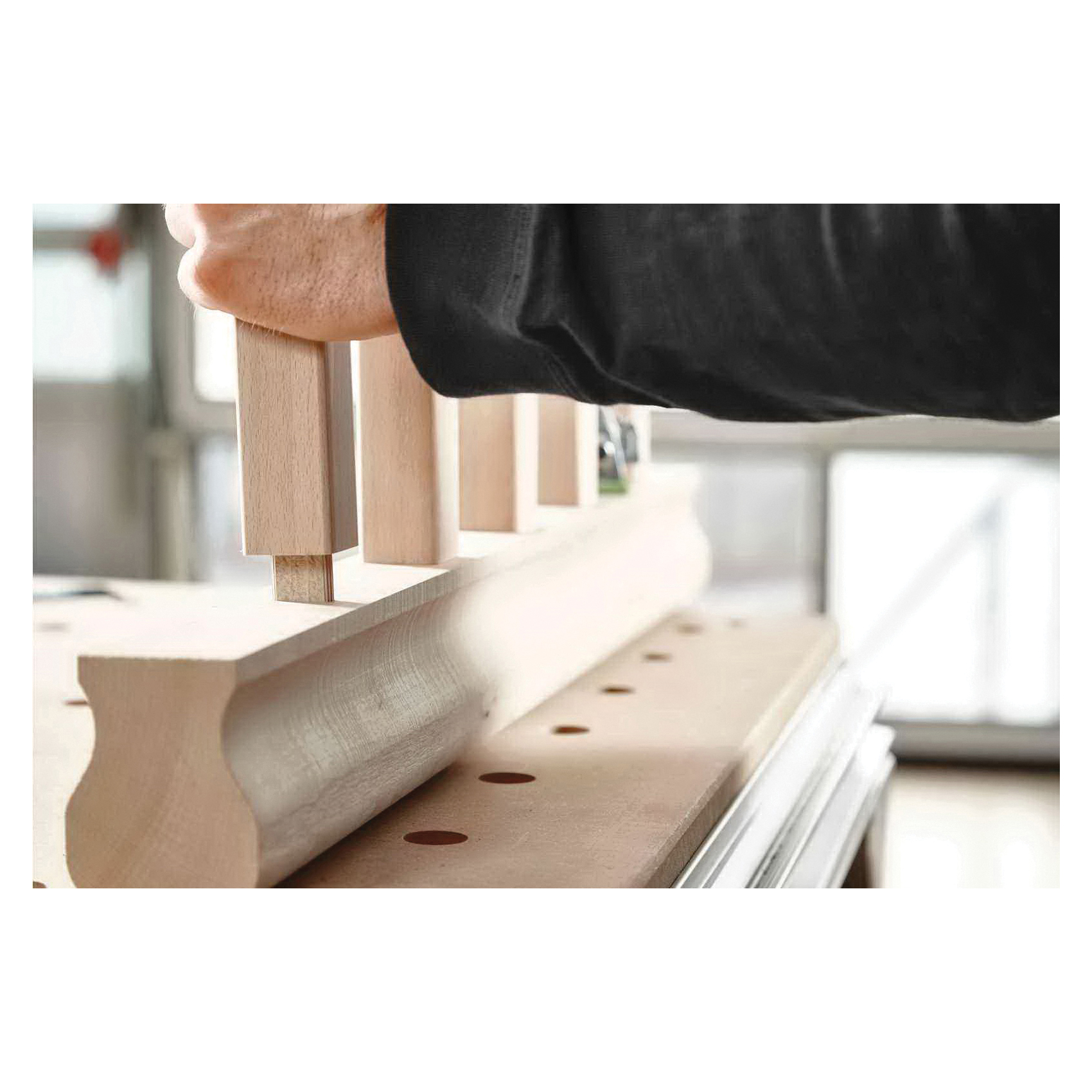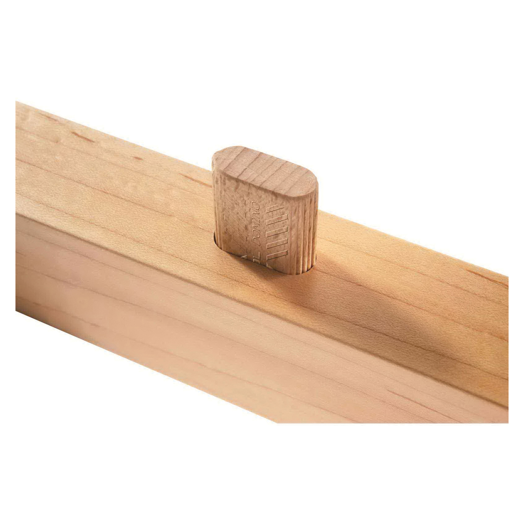 Festool beech tenons are made from all natural, solid hardwood for strength and stability. The beech tenon serves as a true floating tenon in mortise and tenon applications such as furniture, cabinetmaking, casing and frame work. The flat, elongated design will not rotate, ensuring ideal alignment for both edge and face gluing. Suitable for both plywood and solid wood applications, the dense beech tenon will not expand or telegraph through material, leaving you with clean, flat and consistent surfaces. The DOMINO tenon is embossed with glue pockets and is approximately 2 mm shorter than nominal length, allowing space in the mortise for glue. Tenons come in removable plastic bins.