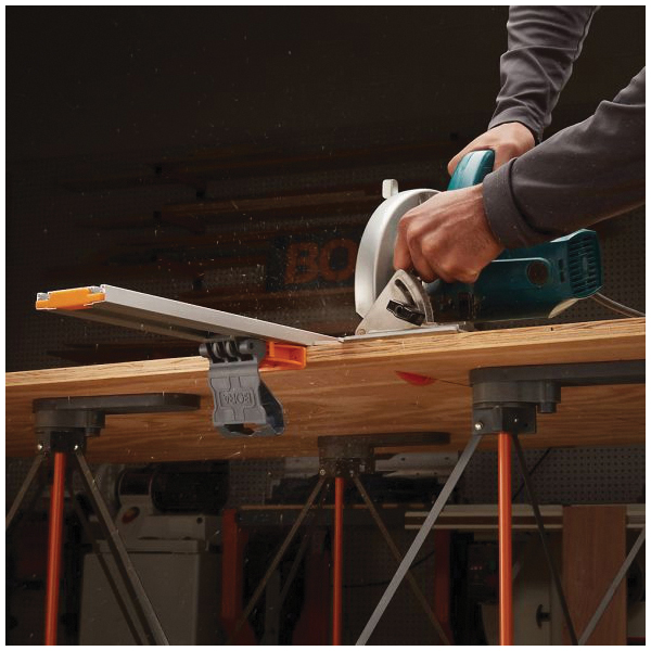 The BORA® NGX 48 in clamp edge makes it even faster and easier to break down sheet material and rip boards with clean, accurate cuts every time. The all new BORA® NGX clamp edge system makes it even faster and easier to break down sheet material and rip boards with clean, accurate cuts every time. Simply hook the clamp edge across your board, line it up with your cut and clamp it down - all without moving your feet. The ergonomically designed sliding clamp handle allows easy one side adjustability. Quickly lock work surfaces securely in place with a tight grip that won't budge. Made of heavy gauge, rigid aluminum for extreme durability, the 38 in clamp edge is designed for use with circular saw's, routers, jig saws and other portable power tools, as well as the NGX saw guide system accessories. Need more length, simply remove the easy off end cap and insert an extension rail for additional cutting capacity - no tools required.