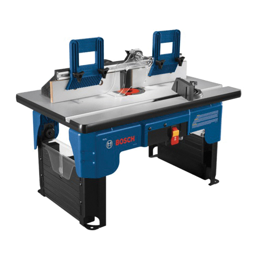 Bosch Portable Benchtop Router Table, 15 A, 33 lb Weight, Leather, Black/Blue/White, 16-1/2 in L, 26 in W, 14-1/2 in H, Includes: (1) RA1141 Portable Benchtop Router Table, (2) Adjustable Featherboards, (3) Mounting Plate Insert Rings, (1) Adjustable Clear Guard, (1) Starter Pin, (1) Starter Pin Guard, (1) Miter Gauge, (2) Outfeed Fence Shims and Hardware for Mounting Routers
