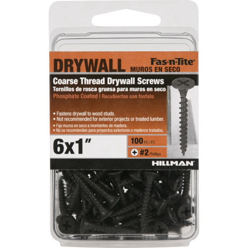 Drywall screws are used to fasten drywall to either wood or metal. The screw's sharp tip is ideal for piercing sturdy materials such as wood or metal. These screws feature a black phosphate finish, making them easy to see while blending in with paint and mudding. Use a #2 Phillips-driver bit for installation.