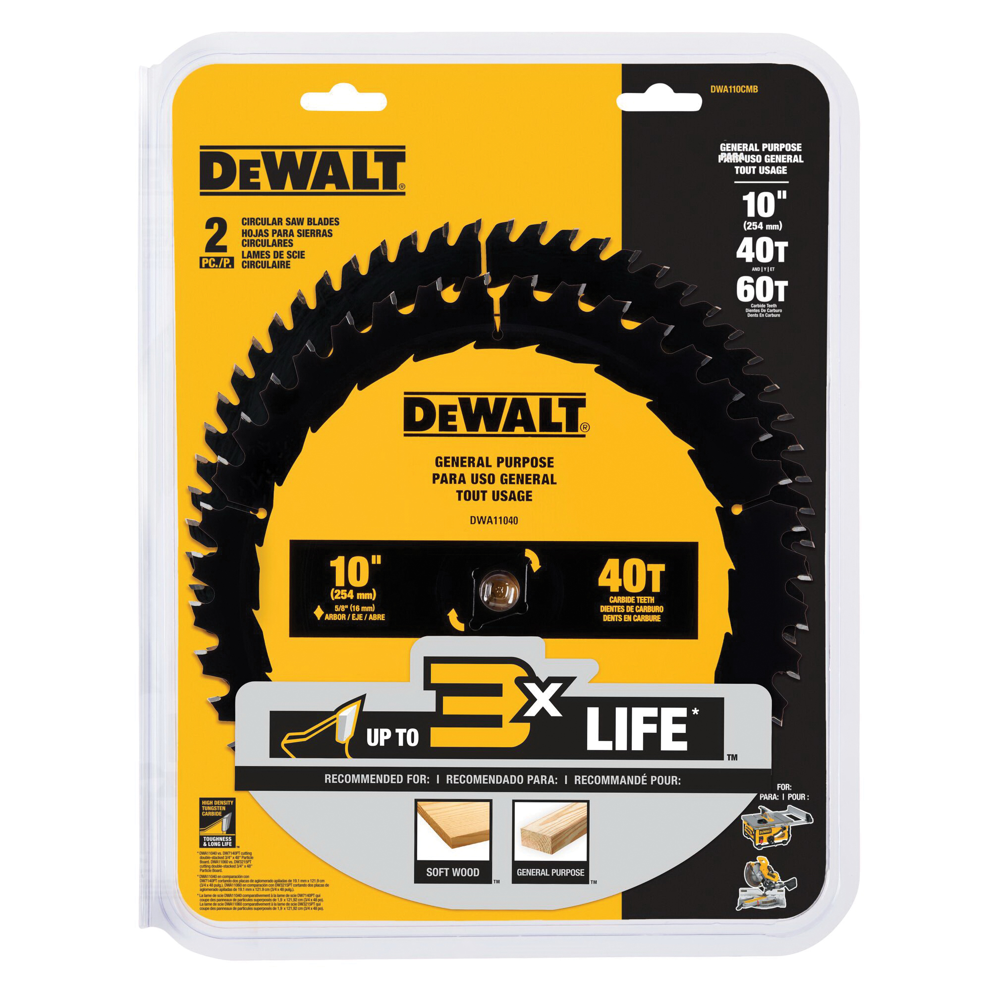 DEWALT DWA110CMB Series Circular Saw Blade Set, Specifications: 5/8 in Arbor Size, 0.094 in Kerf, 60 Teeth, Carbide