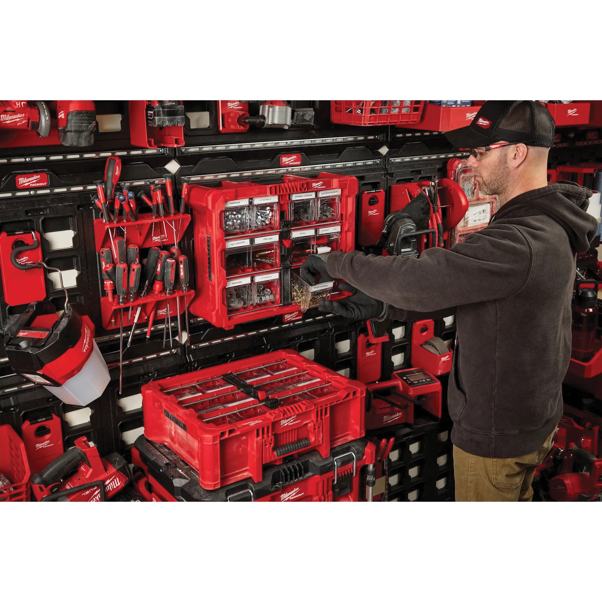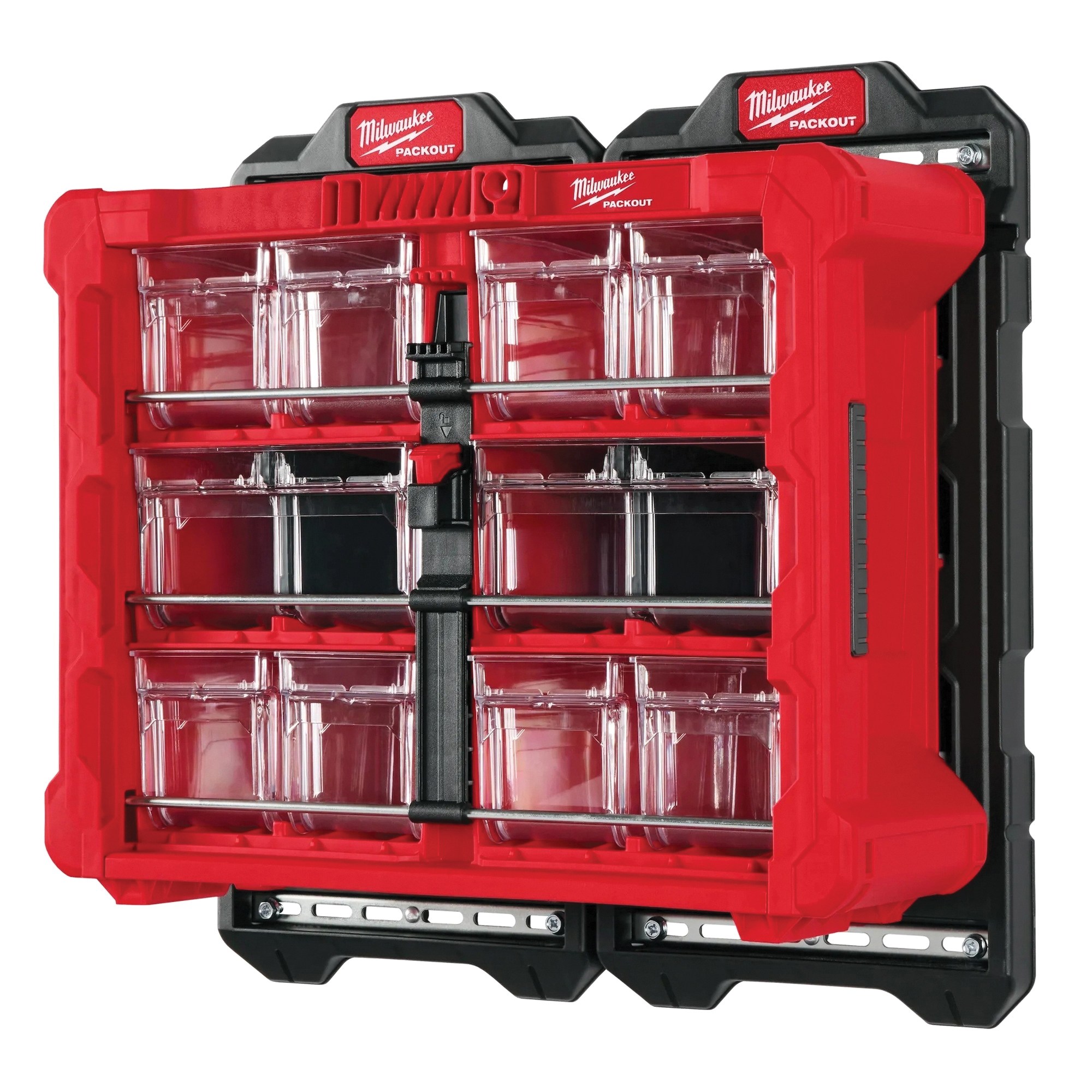 Milwaukee Packout 48-22-8433 Tilt Bin Organizer, 10-Compartment, Plastic, Red