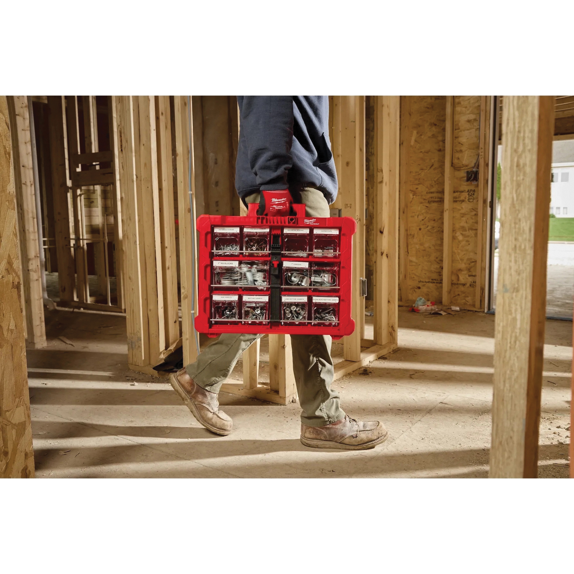 • Milwaukee Packout 48-22-8433 Tilt Bin Organizer, 10-Compartment, Plastic, Red