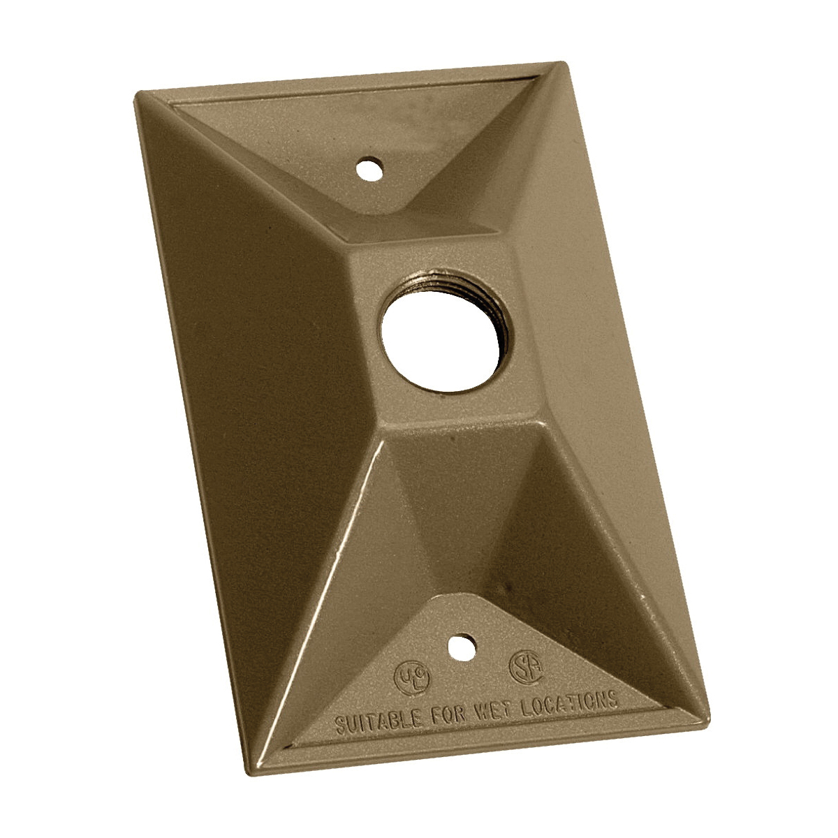 BWF Cover, Lampholder Cover, Rectangular Shape, 1/2 in Diameter Hole, 1 Gangs, Metal, Bronze, 4-1/2 in Length, 2-7/8 in Width, 3R NEMA Rating, Flush Mounting, Suitable for: 1-1/2 in Outlet Box, Includes: Gasket and Screws