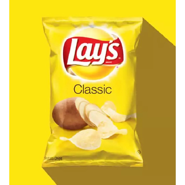 Lays Potato Chips, Pack, Net Content: 2.5 oz, Nutritional Information: 160 Calories, 10 Fat, 1.5 g Saturated, 0g Trans, 0 mg Cholesterol, 170 mg Sodium, 15 g Carbohydrates, 1 g Fiber, <1g Sugars, 2 g Protein, 0 mc Vitamin D, 6% Vitamin C, 10 mg Calcium, 0.6 mg Iron, 350 mg Potassium, Ingredients: Potatoes, Vegetable Oil (Sunflower, Corn and/or Canola Oil), Salt