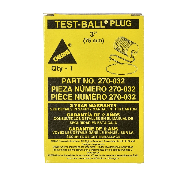 Cherne® Single-Size Test-Ball® plugs are designed to test drain, vent and waste systems in every type of pipe. They also can be inserted through a test tee to seal out-of-round pipe.
