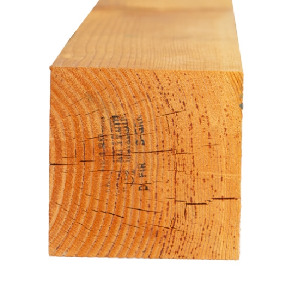 Douglas Fir, Green, No. 1 & Better grade lumber. Often described as a 14 ft, 6 x 6 (nominal sizing), this product typically measures 5-1/2 in thick by 5-1/2 in wide. Appearance notes: Rough Sawn, Surfaced 4 Sides.