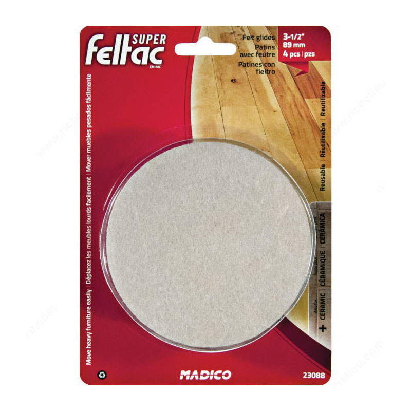 SUPER feltac 23088 Reusable Glide, Felt/Foam, Beige/Black, 88 mm Dia x 14.5 mm THK Dimensions