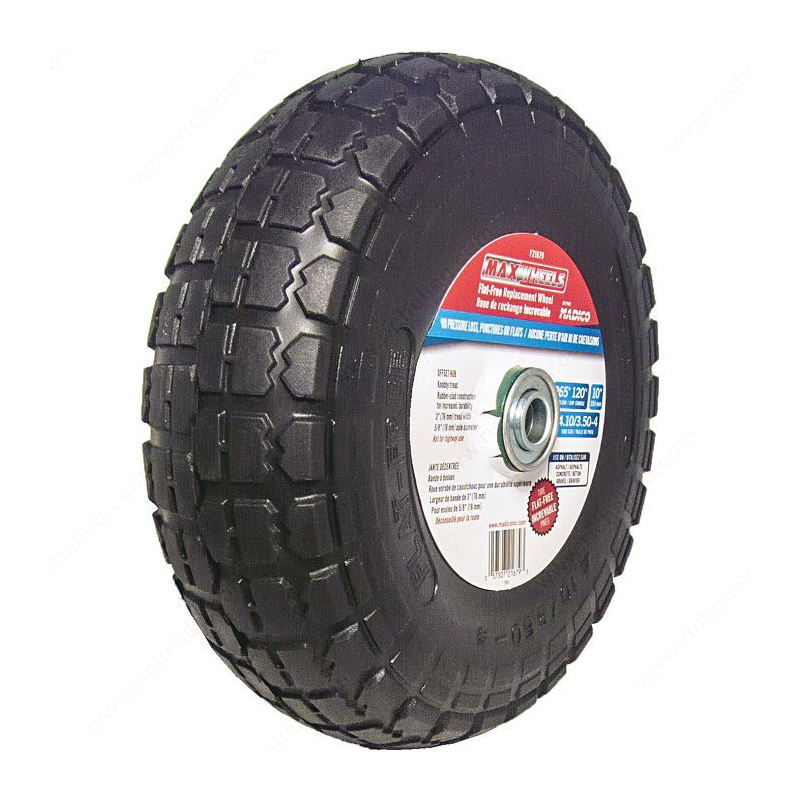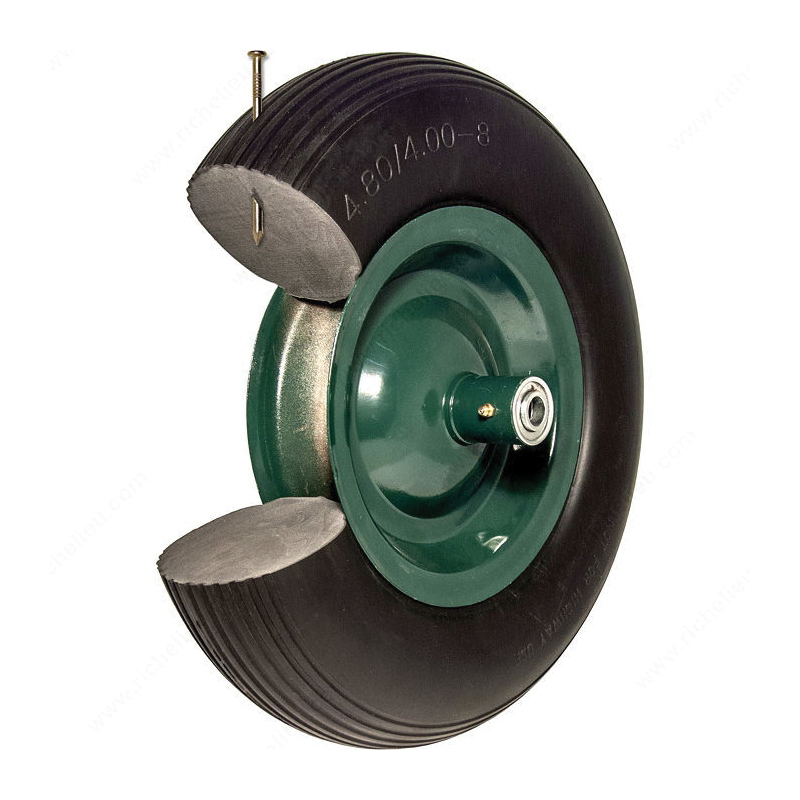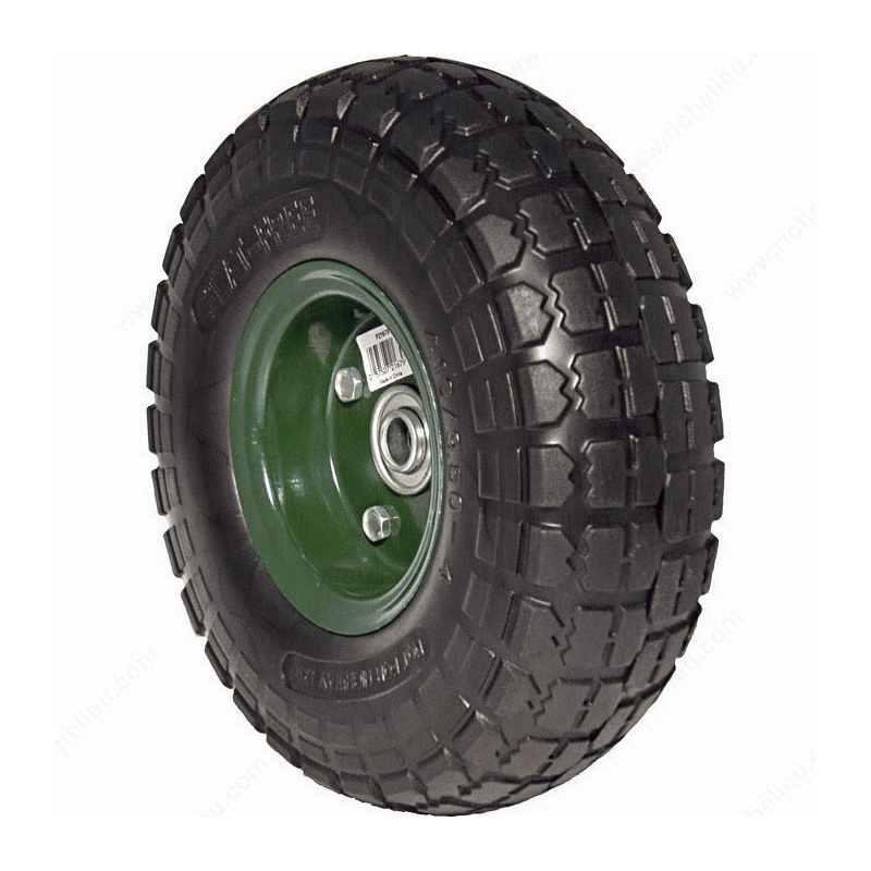 Madico Wheel, Flat-Free, 4.10/3.50-4 Tire, Studded Tread, Polyurethane Foam Tire, 10 in Dia Tire, Rim Color: Green, 120 kg Max Load