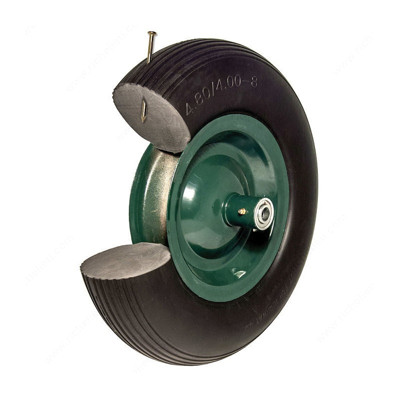 Madico Wheel, Flat-Free, 4.80/4.00-8 Tire, Ribbed Tread, Polyurethane Foam Tire, 16 in Dia Tire, Rim Color: Green, 140 kg Max Load