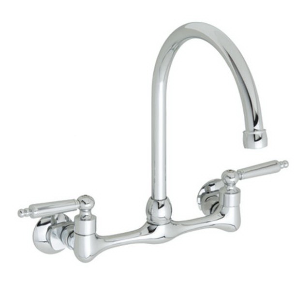 Proflo Kitchen Faucet, 1/2 in Connection, IPS Connection, 1.8 gpm, Spout Type: High Arc, Swivel, Spout Reach: 7-7/8 in, Spout Height: 6-5/8 in, Lever Handle, Metal, Polished Chrome, Wall Mounting, Number of Faucet Holes: 2, Faucet Centers: 8 in, Dimensions: 15-18 in W x 12-3/4 in H