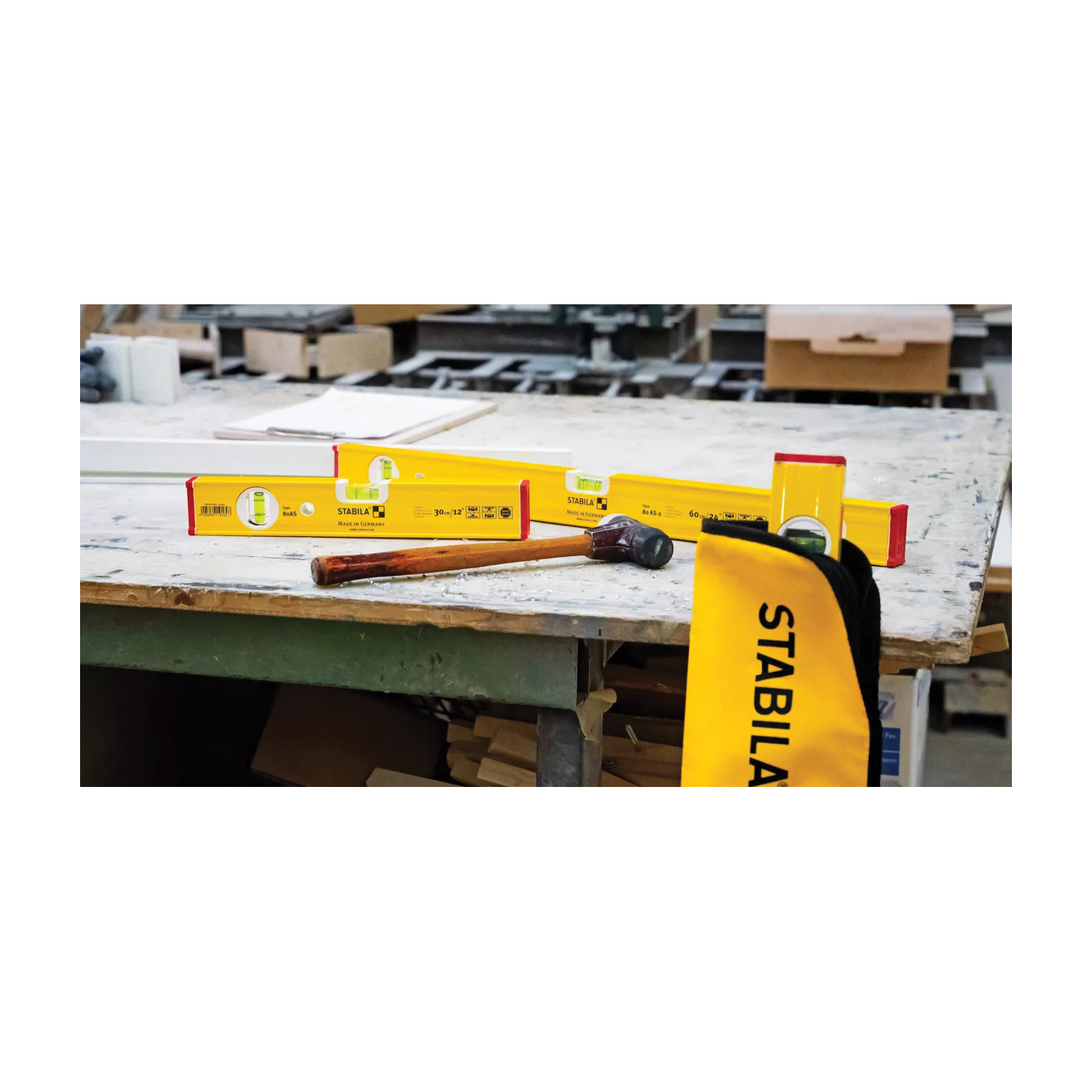 Three pro spirit levels in an attractive set with the STABILA PRO SET 80 AS in the popular lengths of 48 in (120 cm), 24 in (60 cm) and 12 in (30 cm) you have the ideal equipment for your projects. Thanks to their proven STABILA quality, the spirit levels are reliable helpers on the construction site. The technology of the vial installation guarantees lasting precision and a long service life. Integrated slip stoppers ensure that the spirit level holds firm when marking. The robust carrying case helps you transport and protect your tools. STABILA always a good choice for true pros.