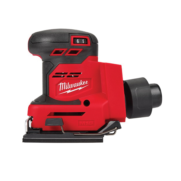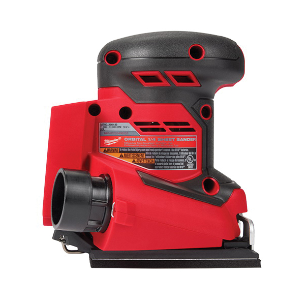 Milwaukee Orbital Sheet Sander, Tool Only/Battery Included: Tool Only, 18 V, 4-1/2 x 5-1/2 in Pad/Disc, Load Speed: 11,000 to 13,000 opm, Includes: Dust Bag, Paper Punch, Universal Hose Adapter, 120 Grit Sanding Sheet and 220 Grit Sandpaper