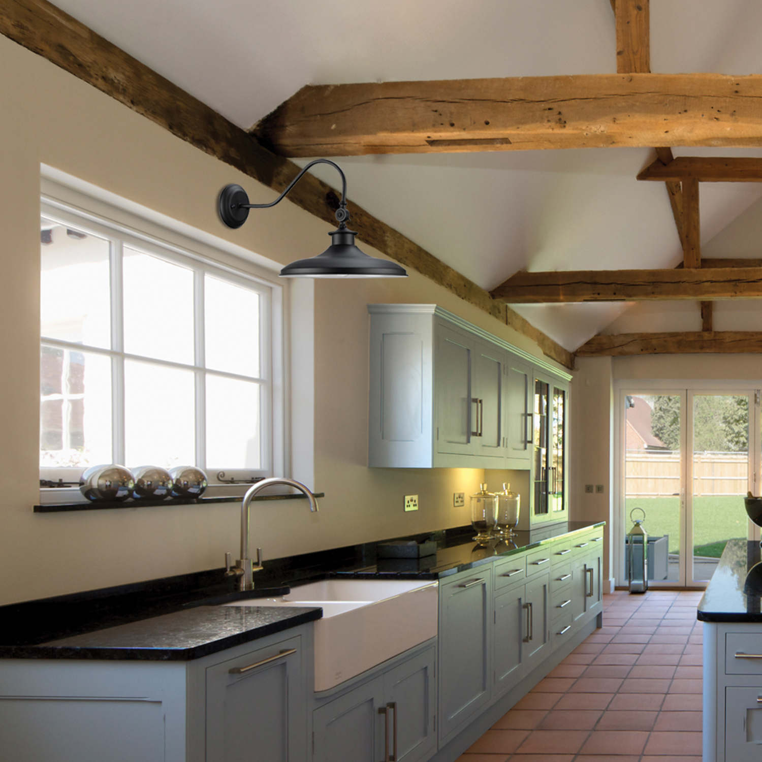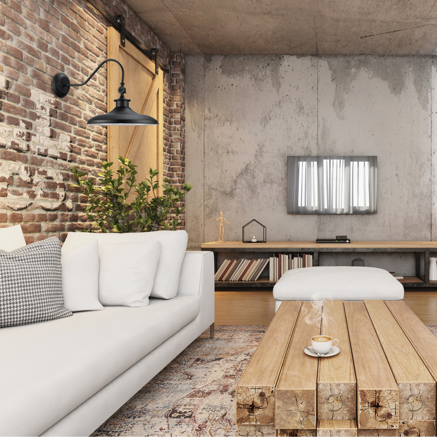 Fashioned after factory and barn lighting globe electric Aedan 1-light swivel wall sconce adds a vintage industrial feel to any space. The unique shade can be pointed in many directions to give you the light you desire. Fully dimmable with a compatible dimmer switch and bulbs allowing you to customize lighting ambiance and mood. Ideal for use in kitchens, restaurants, bars, and dining rooms the exposed bulb in this fixture delivers perfect style. Pair it with a globe electric vintage Edison bulb to complete the look. Includes all mounting hardware for quick and easy installation and requires one medium-based 60 W bulb.
