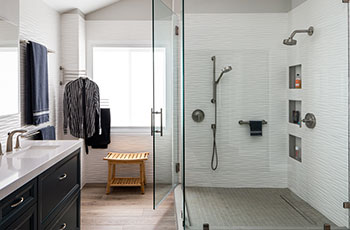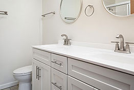 Each design center features a complete line of custom cabinetry and a multitude of finish and style options from top manufacturers. To complete your bathroom, our highly trained professionals specialize in all aspects of cabinetry, countertops and designer plumbing to assist you with each step of your project – from measuring the space and assisting with design, to ordering the products and arranging cabinet installation. Visit one of our design centers today.
